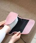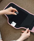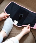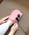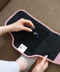 使い方も簡単、面ファスナーなので足に巻くだけの簡単装着。ボタン一つで電源オンオフ/強さ調整の操作が可能で気軽にお使いいただけます。