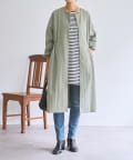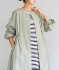 長いシーズン通して活躍するフレアーシルエットのノーカラーコート