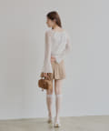 ・胸元にさりげなく施されたシャーリングとリボンが、女性らしいアクセントに◎