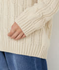 ざっくりとした編み目のケーブルニットがレトロでカジュアルな印象に◎