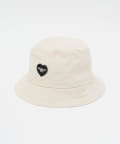 ミッドウェイトのコットンツイル素材を使用し、裏地なしのデザインで仕上げたドリューバケットハット。フロントにはハートのワッペンがあしらわれている。被る人を選ばない綺麗なシルエットがポイントです。