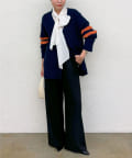●シャツやボウタイブラウスをレイヤードしスポーティ×クラシカルに着こなすのもおすすめ。