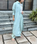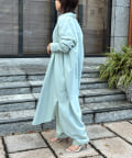 ・スナップボタンで開け閉めしやすく、ワンピースとしてだけでないく羽織としても活躍する一枚。