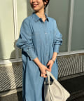 ・カジュアルなデニムシャツも、とろみ感のある素材で女性らしいすっきりとした印象に。