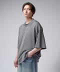 キレイめでラフな印象のこちらのニットポロ。身幅と着丈をやや広くとりラフに着て頂けるサイジング。フロントにボタンと襟のアクセント。