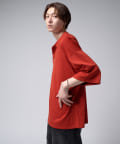 素材にはヴィスコースとポリエステルの混紡素材を使用。ハイゲージで編みたてたニットで、ニットなのにカットソー感覚で着られる優れもの。