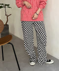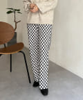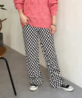 ・チェック・チェック柄パンツ・チェッカーフラッグ・ブロックチェック・モノトーン・起毛パンツ・イージーパンツ・ゆるパンツ・21AW・柄パンツ