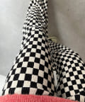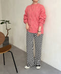 ・存在感のあるチェッカーフラッグ柄とリブのスッキリ効果で、シンプルなコーディネートがお洒落見えします。