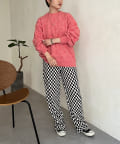 トレンドのチェッカーフラッグ柄でゆるコーデに
