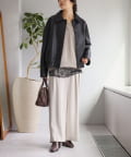 購入場所:パルクローゼットいちばん欲しかったのはグレージュだったんですが売り切れてて、でも早く欲しかったのでアイボリーを購入しました。スタッフさんがオススメするだけあって、落ち感があって本当にシルエットが素敵です。アイボリーの色味が綺麗すぎたのでグレージュを買おうか濃色のチャコールを買おうか迷っていたら、黒が登場したので迷わず黒を予約しました(笑)