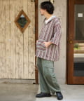 シンプルなパンツに合わせるだけで、季節感のあるリゾートスタイルが完成します。