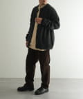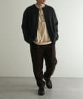 身幅にゆとりがあるオーバーサイズなので、スウェットなど厚手のアイテムとのレイヤードもしていただけます。