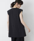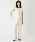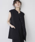 ■ウエストをシェイプさせた細身のデザインや、クルーネック、同色の釦など、ややモードでシックな印象に。