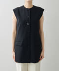 ■膨らみのあるダブルクロス素材を使用したクルーネックジレ。