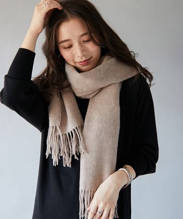ぐるりと襟元に巻いてカジュアルなコーデにしたり、肩掛けにしてフェミニンに演出したり、普段のベーシック服にプラスするのにおすすめの小物です。