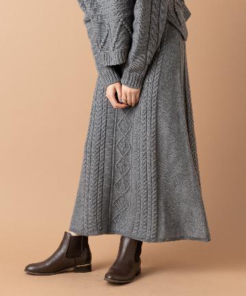【フレアのシルエットが女性らしく華やかに】ケーブルマキシスカート