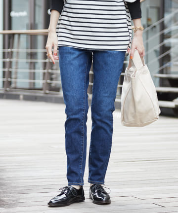 広がり過ぎないストレートで脚長効果も期待できるのが嬉しいポイントです。すっきりシルエットなのでアウトスタイルも決まりますよ♪