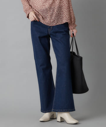 脚のラインを拾いすぎないワイドシルエットで体型カバーも叶うデニムパンツ。