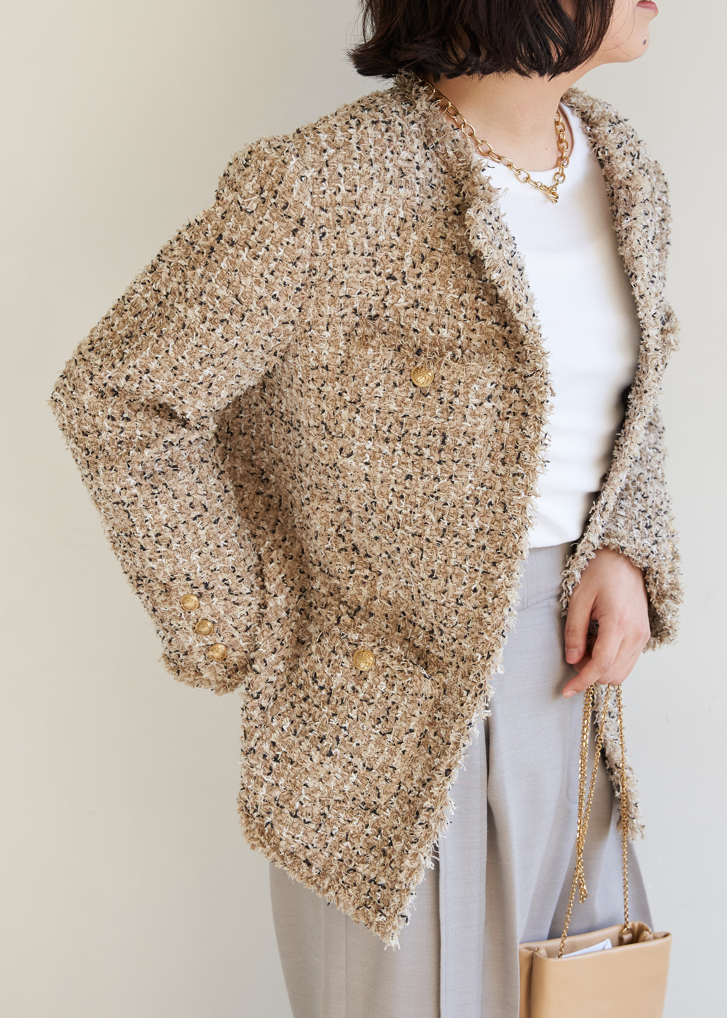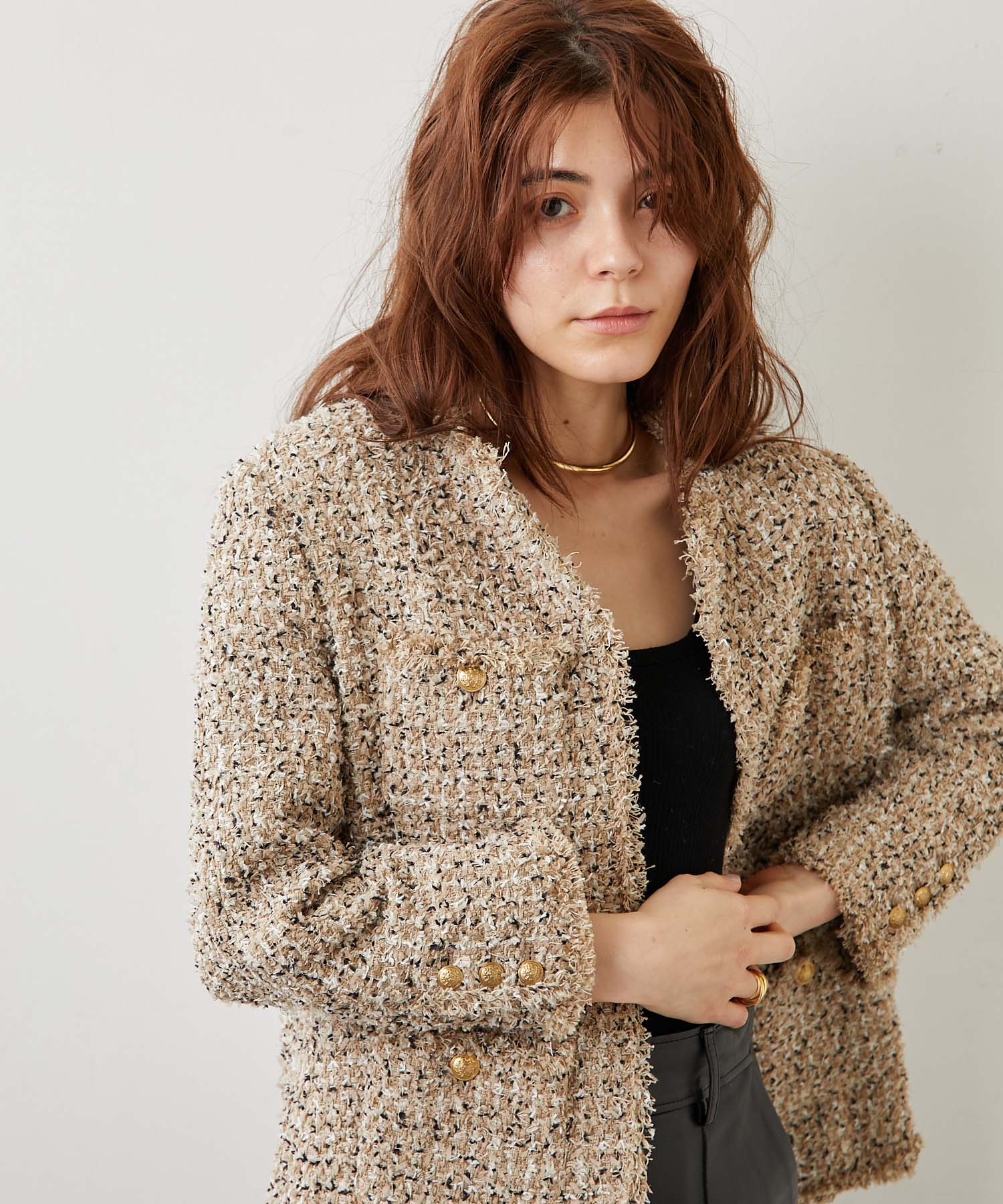 シーンレスに活躍してくれるツイードジャケットは働く姿も美しく見せてくれます。