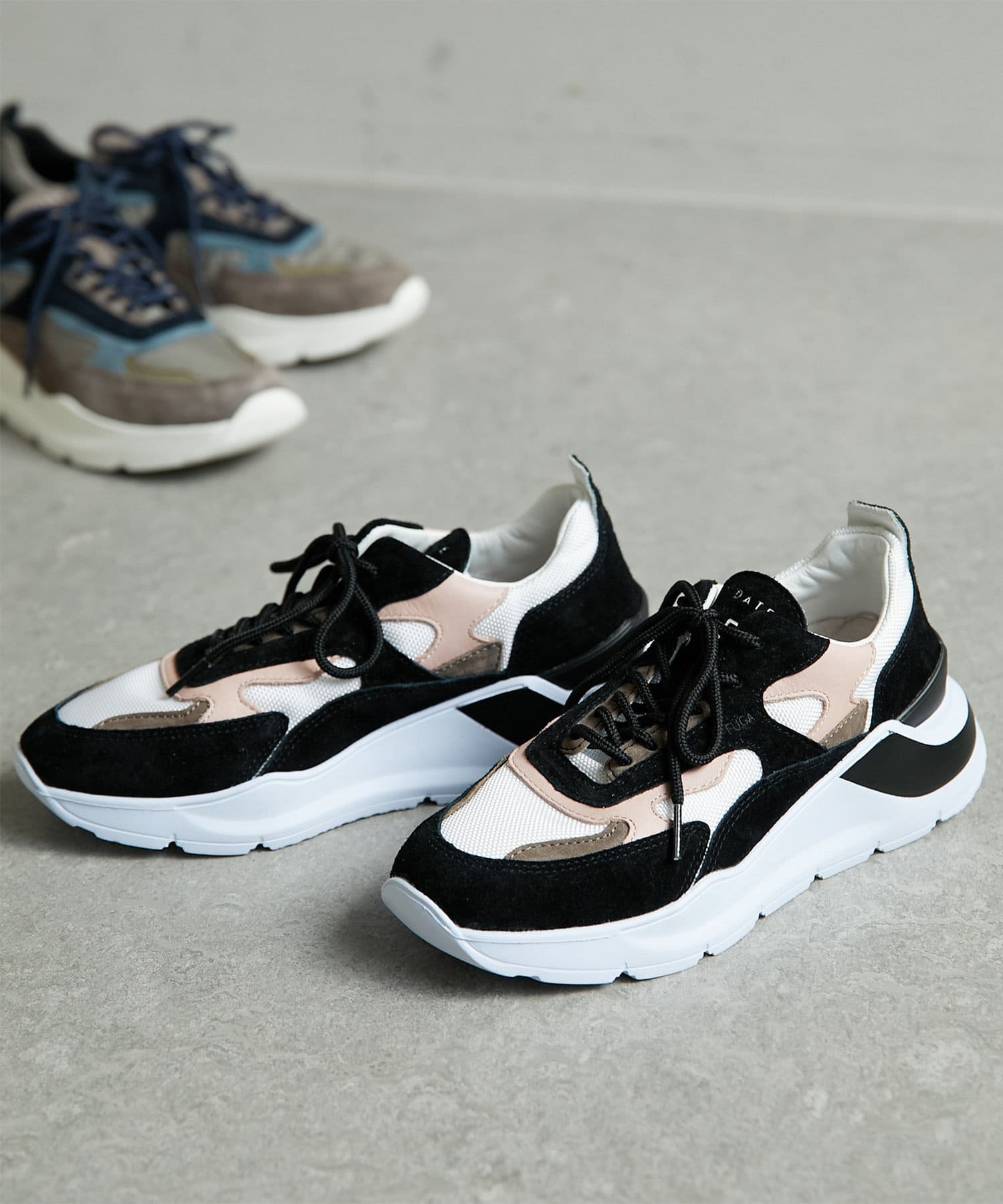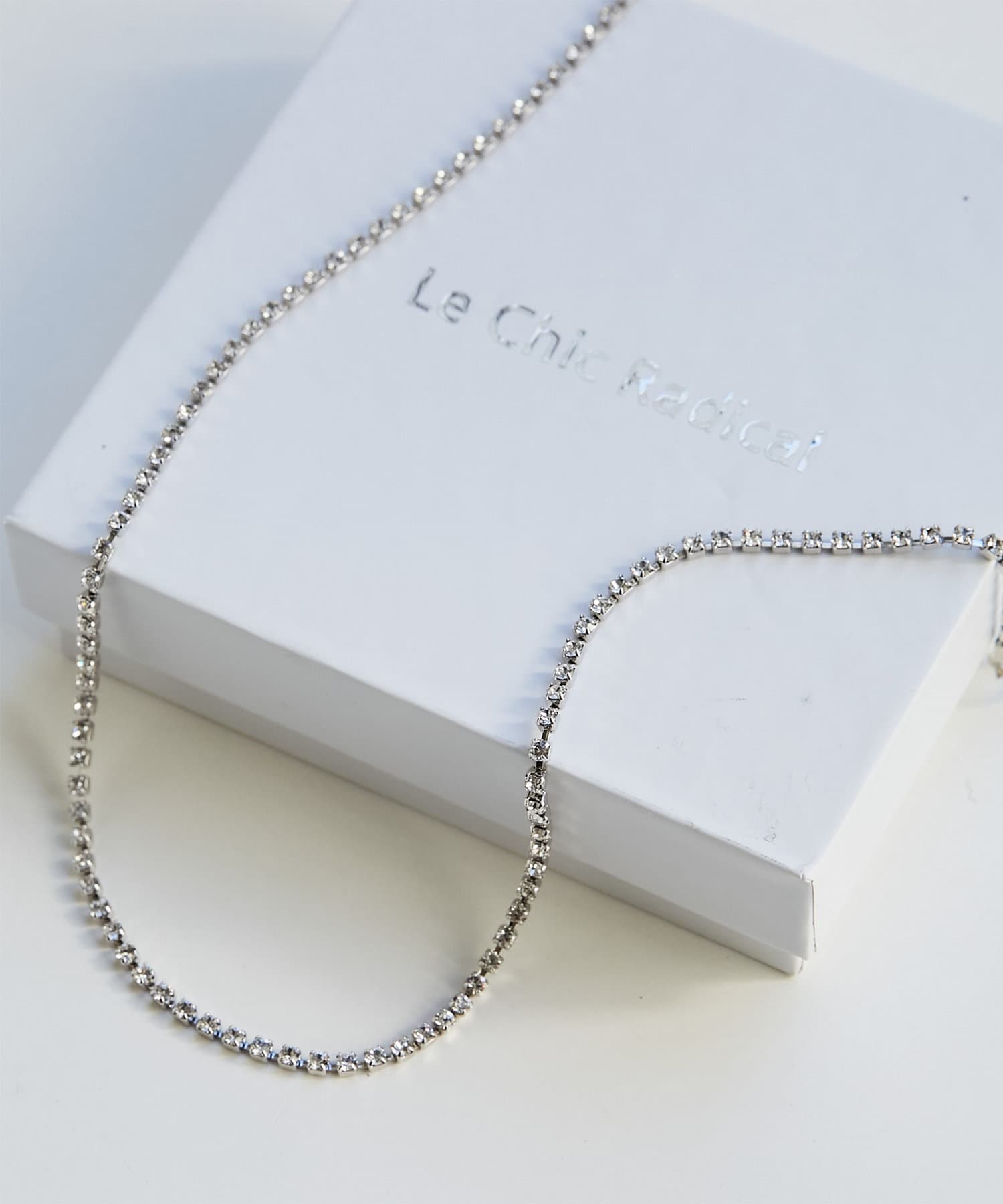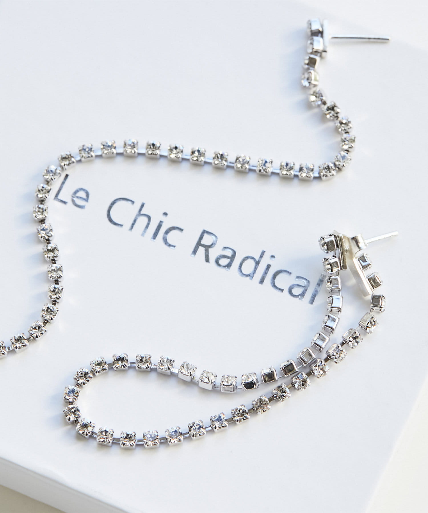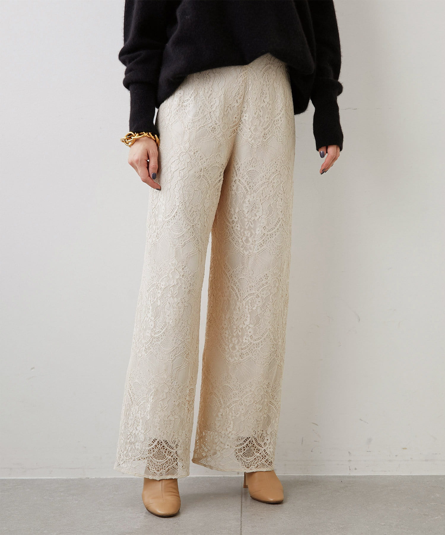 ホワイトのセットアップなら、一気に華やかな印象に。