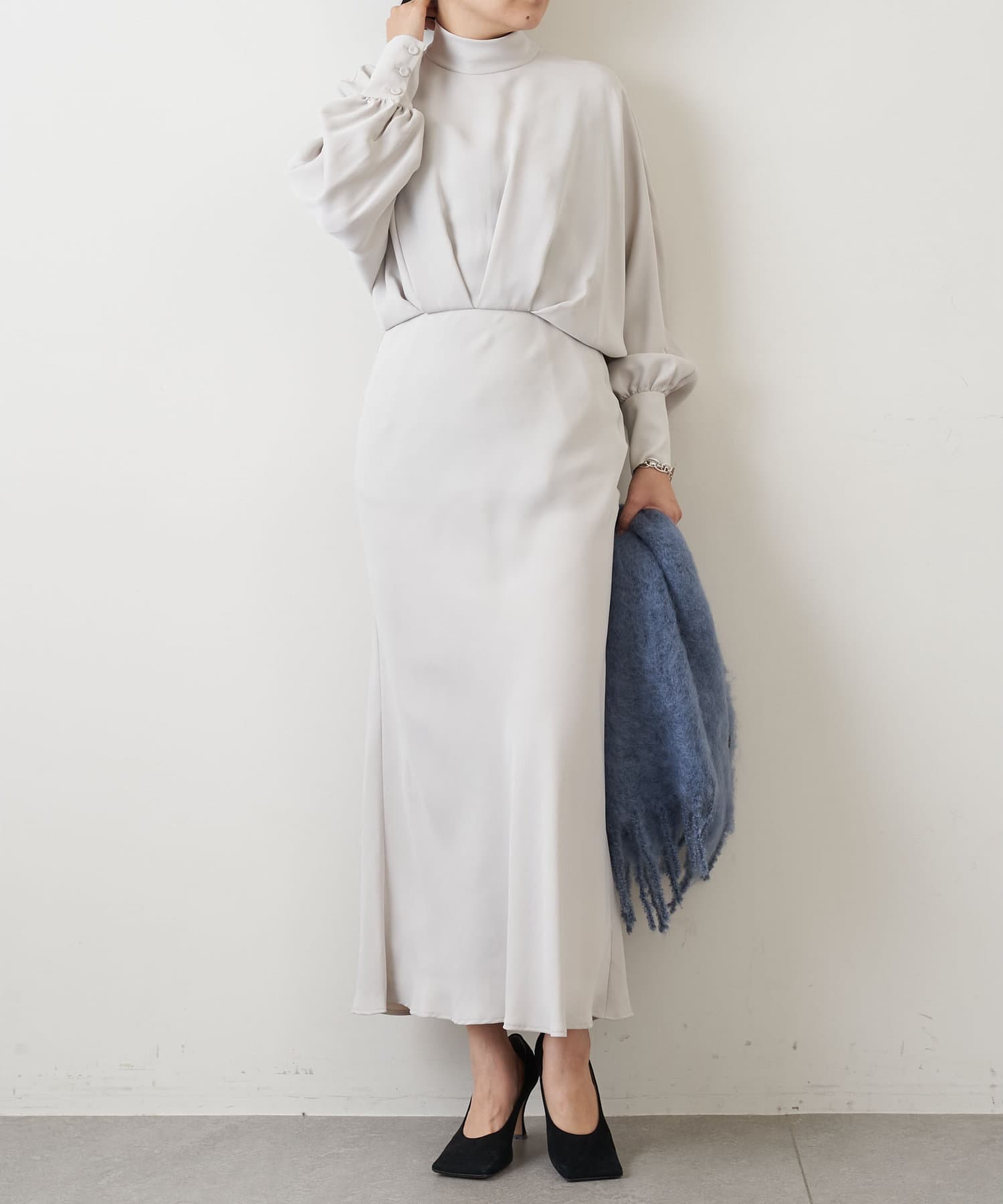 袖やスリットにあしらわれたフリンジなど凝ったディティールもポイントです。
