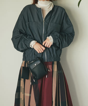 ブラックのパイピングが効いていて、袖の形も素敵!シックなモノトーンでまとめると、甘すぎず大人っぽい印象に。