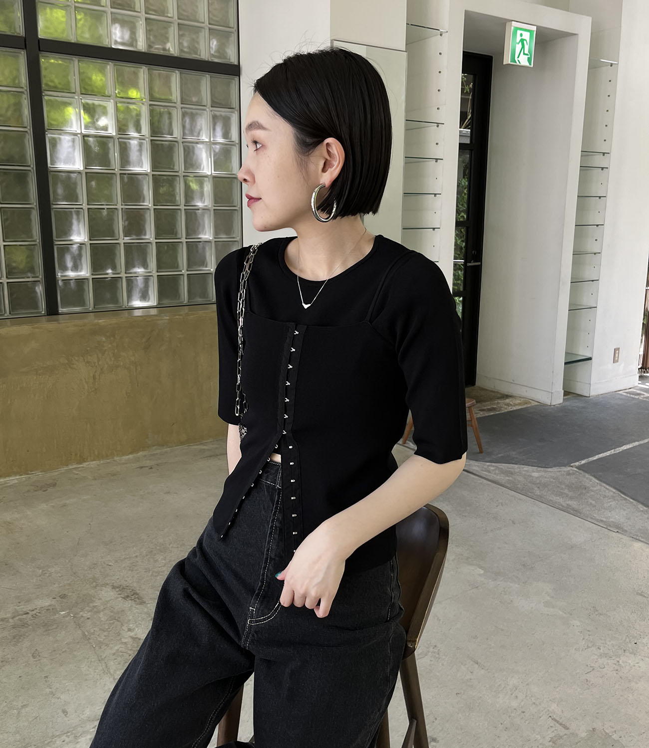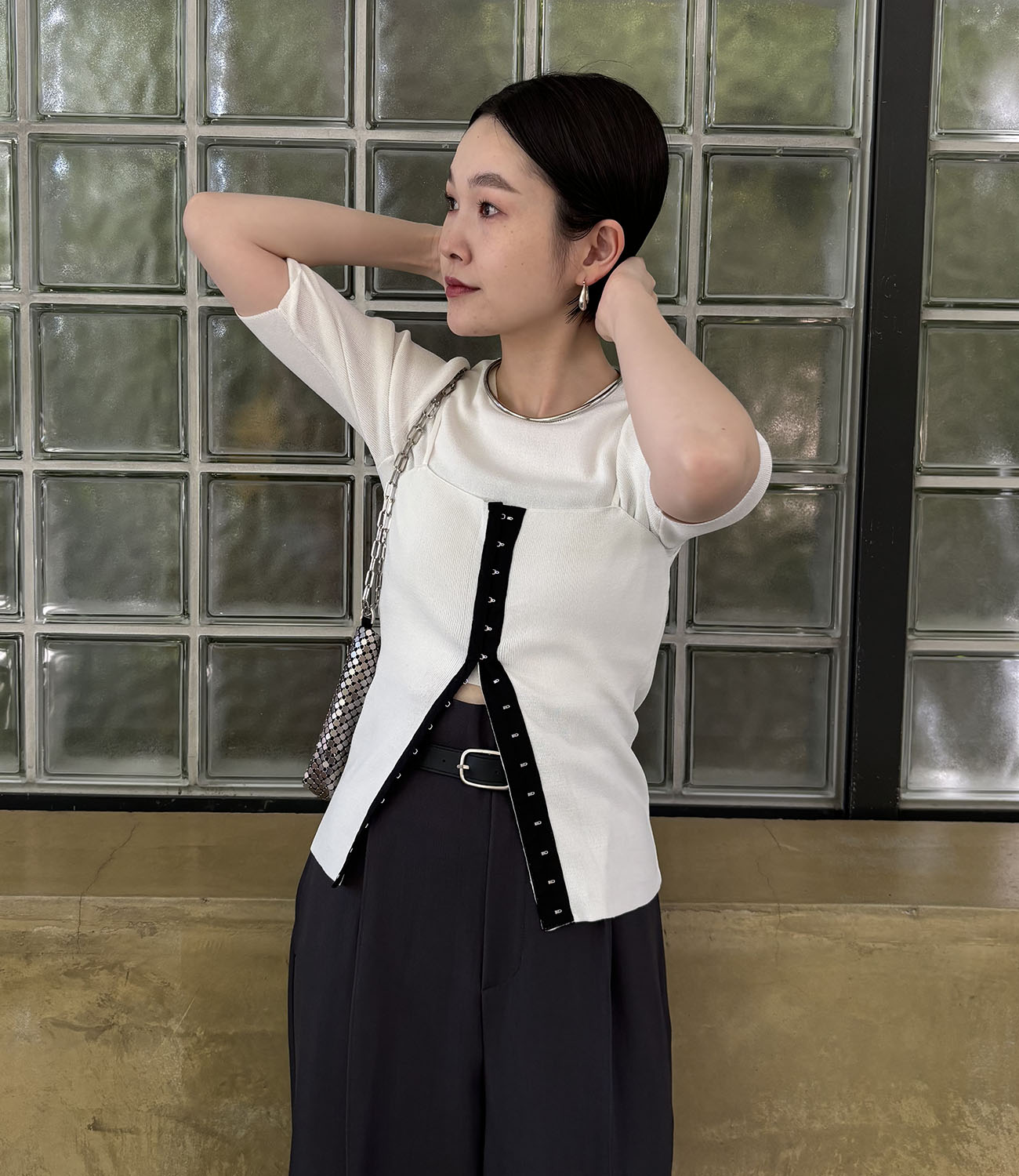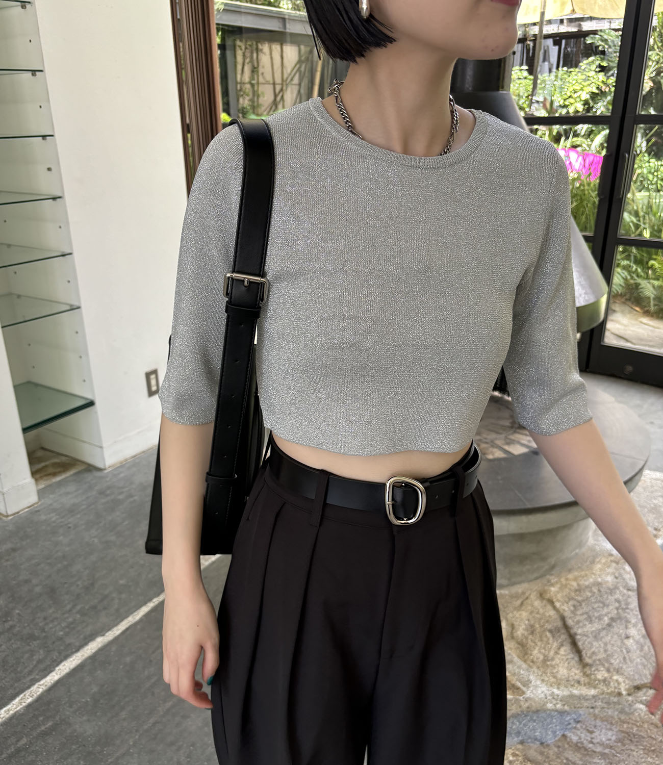 トレンドライクな短丈トップスと