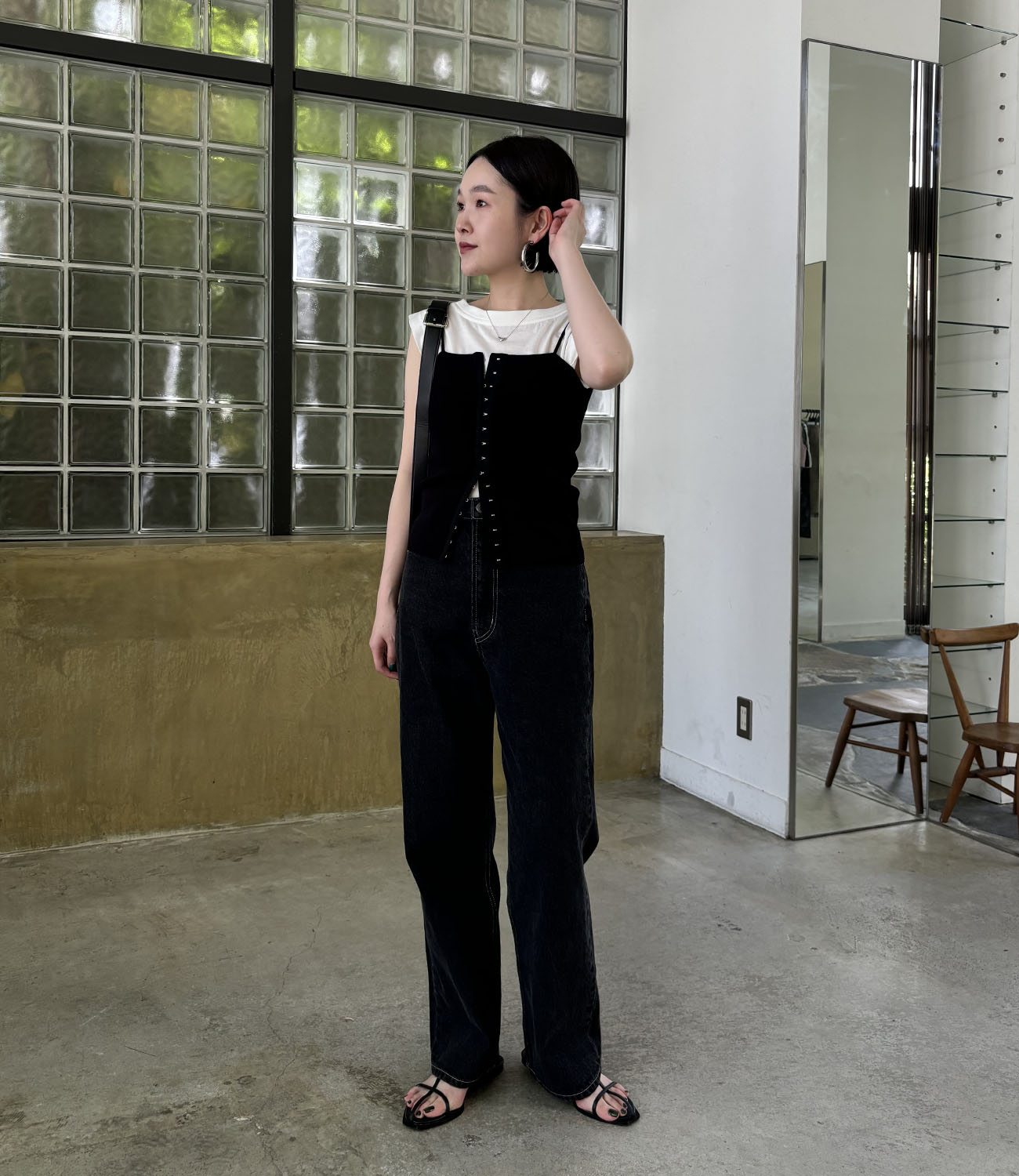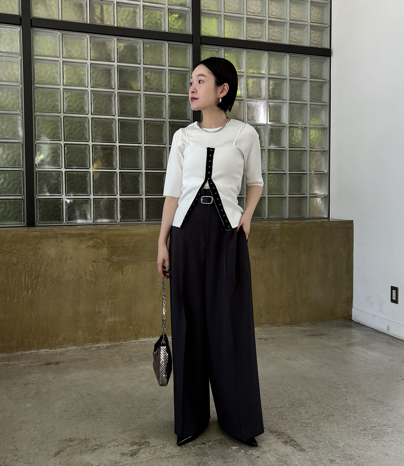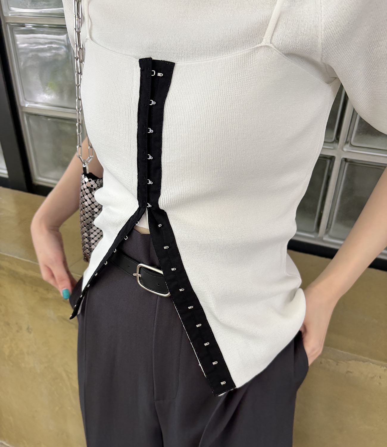 前開きキャミのレイヤードデザイン。
