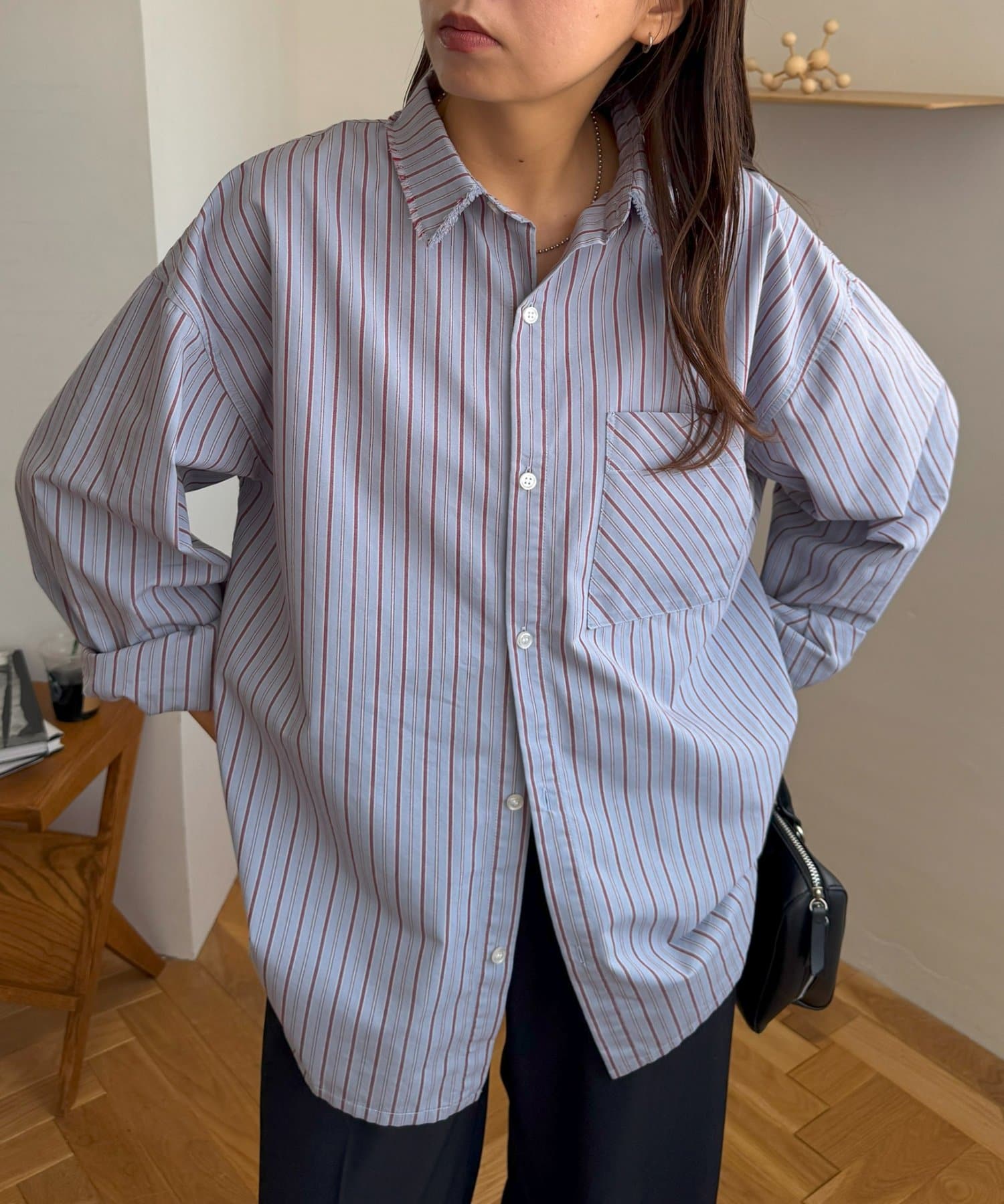 • ランダムストライプフリンジオーバーシャツ