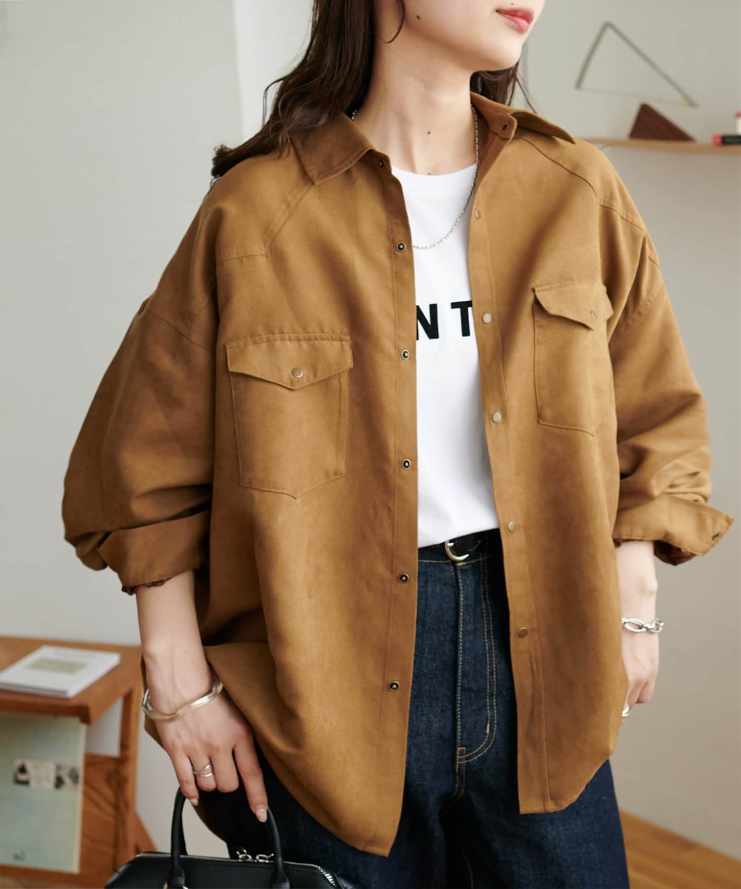 • フェイクスエードウエスタンシャツ