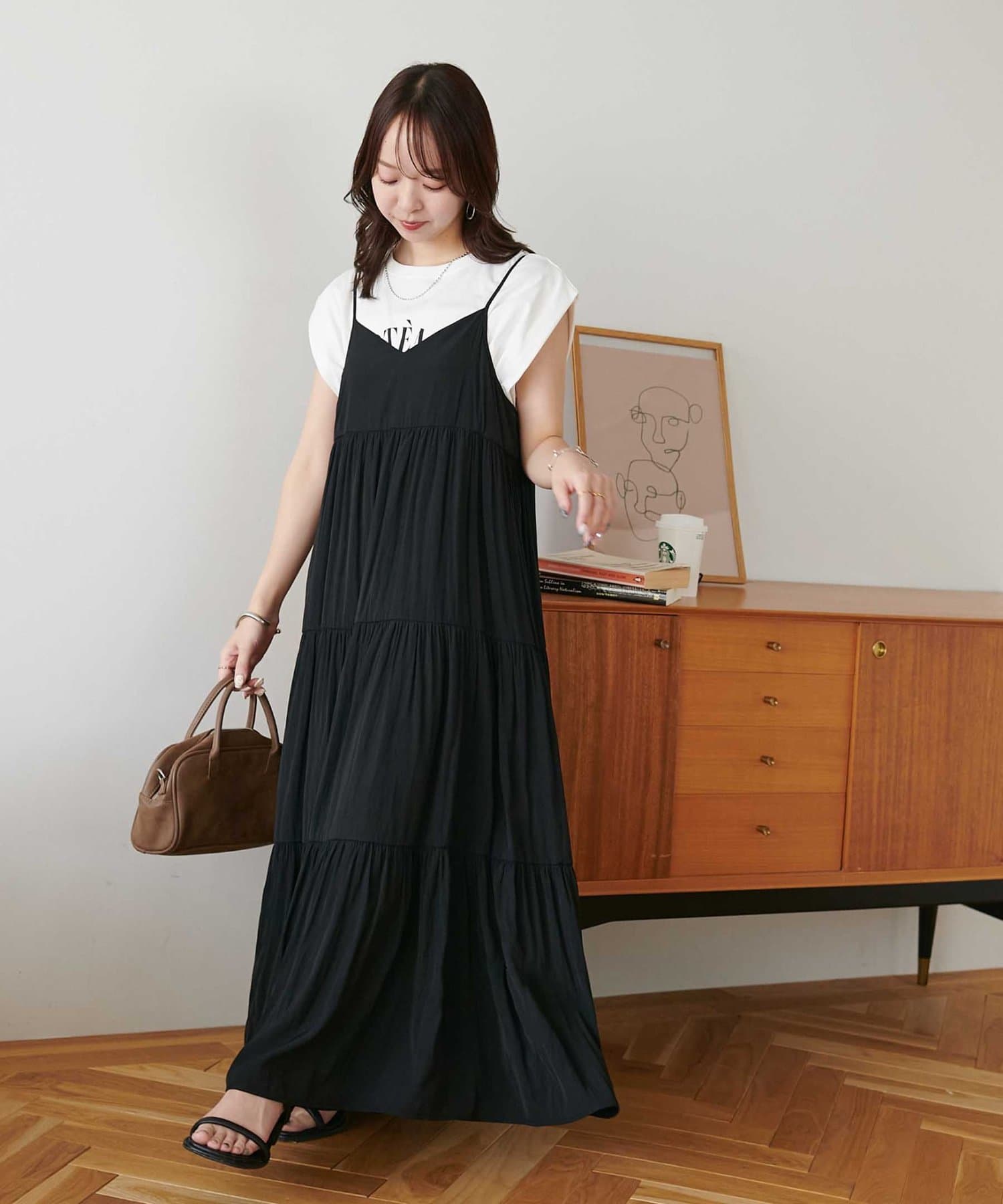• メモリーサテンキャミワンピース