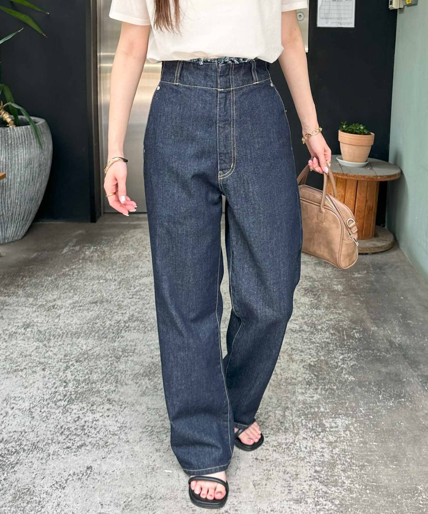 • USコットンデニムハイウエストウエストフリンジパンツ