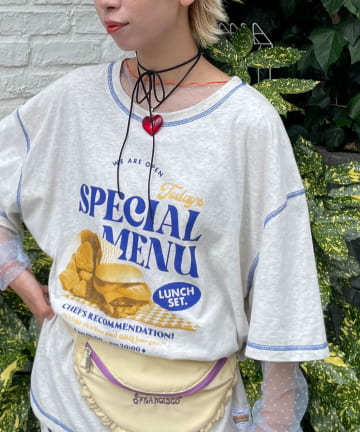 【HELLO.SANFRANCISCO/ハローサンフランシスコ】配色ステッチカフェメニューTEE