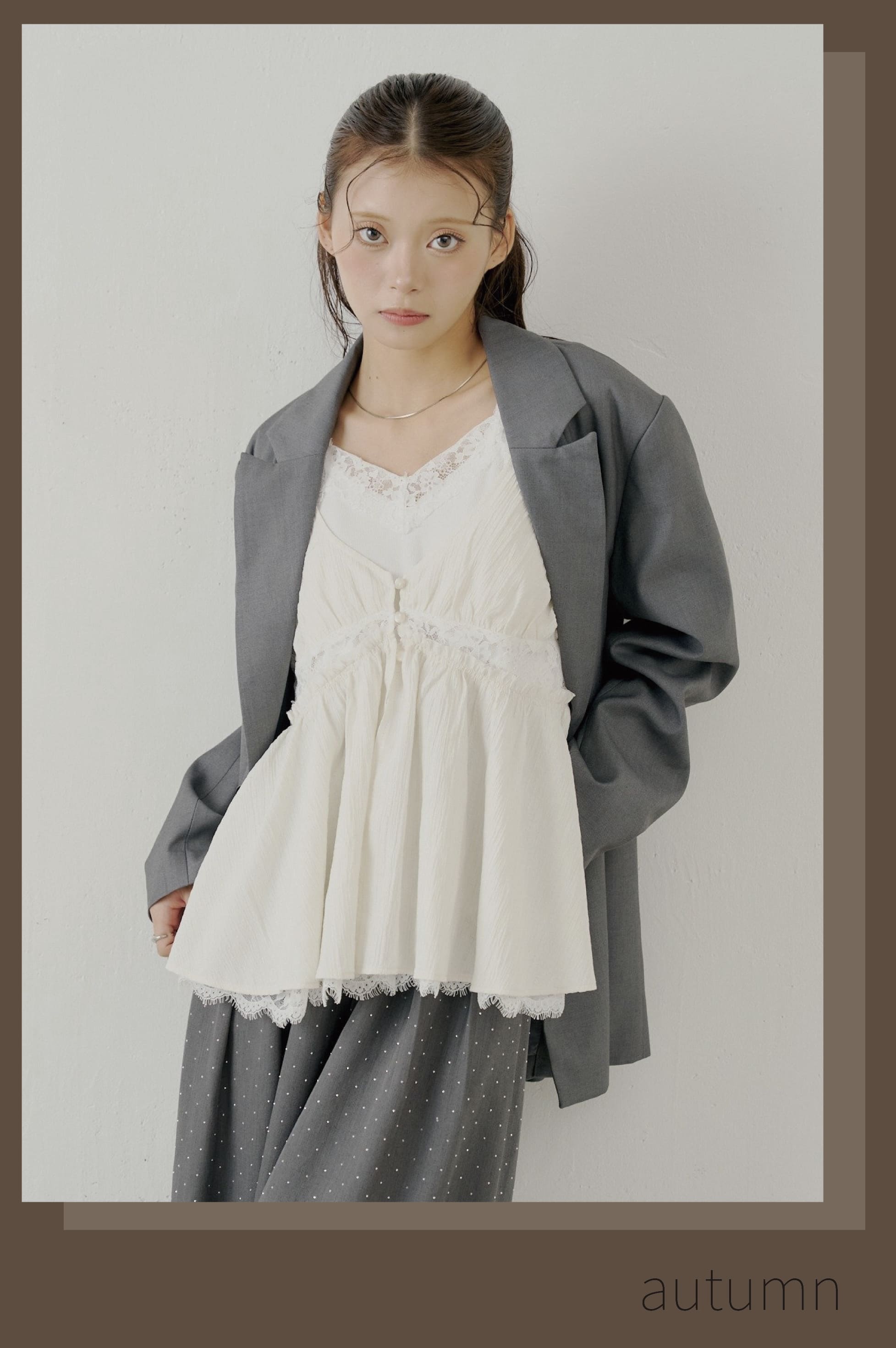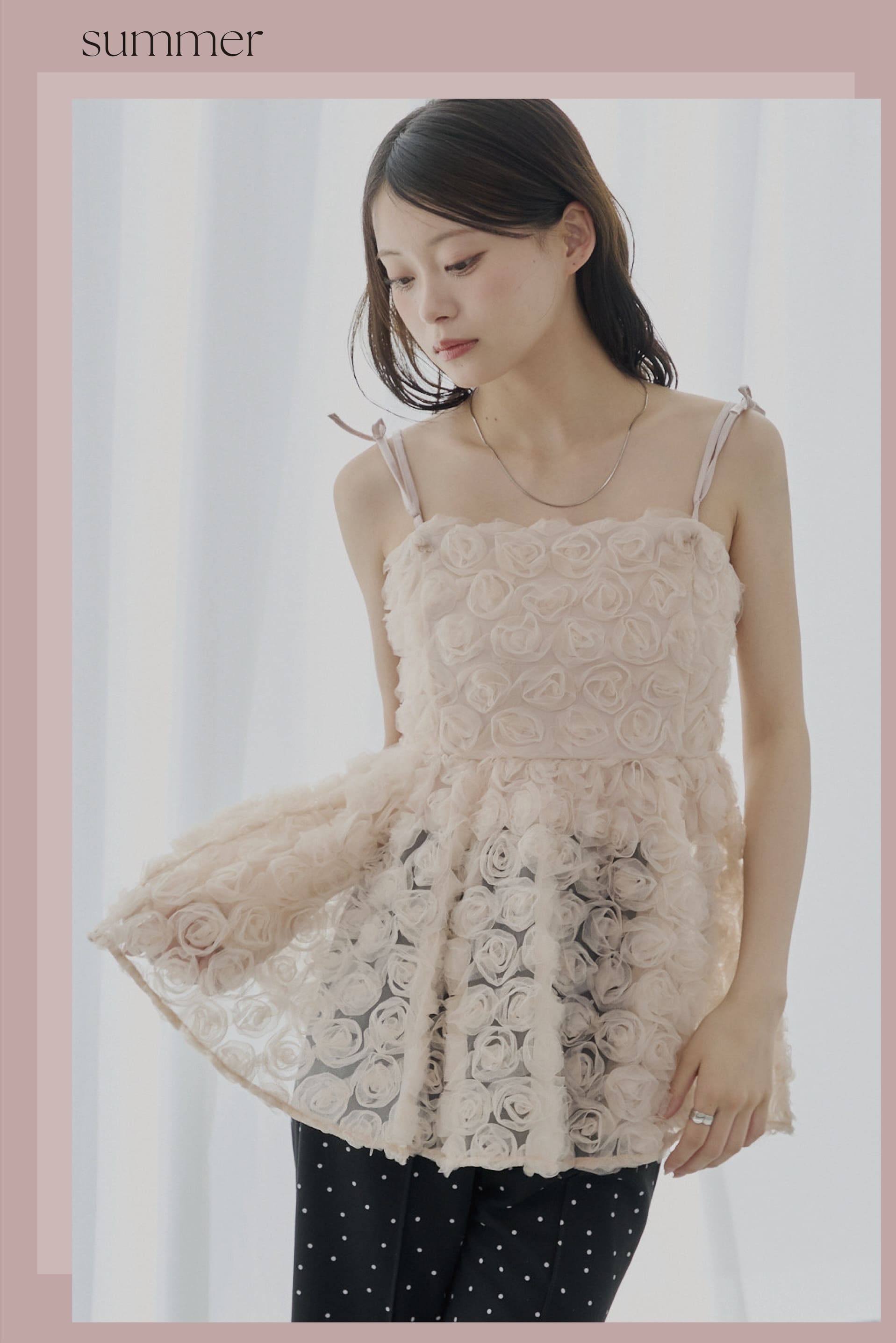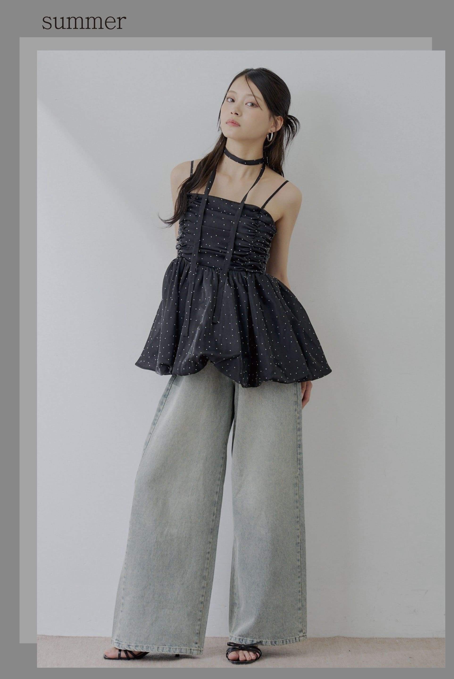 -ランジェリーレイヤードサテンペプラムキャミ-