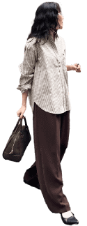 ゆったりと着やすいチェック柄シャツは柄が細かめで、大人っぽく着こなせます!