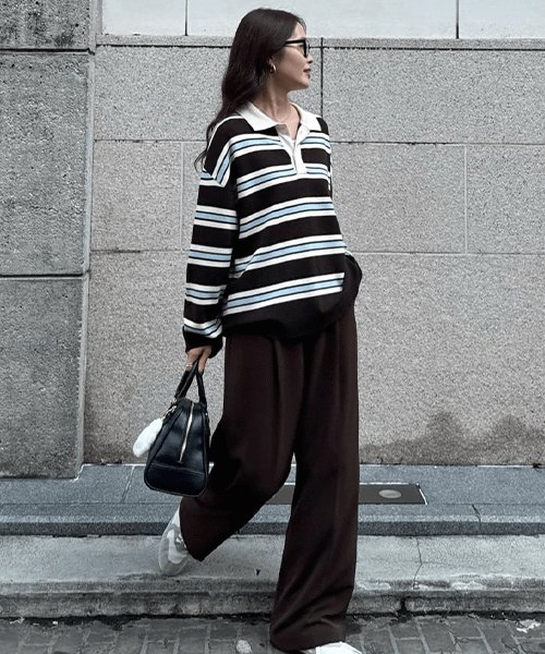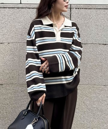 ラガーニットプルオーバーを使った秋の気分高まるコーデ♪