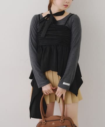 【RMAF】【韓国風コーデ叶う!】シャーリング衿付ブラウス