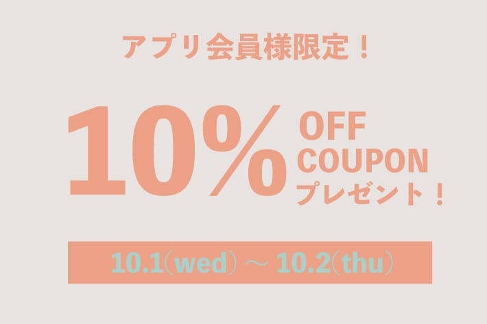 本日から『アプリ会員様限定10%OFFクーポンプレゼント!』10%OFFクーポンフェア開催!