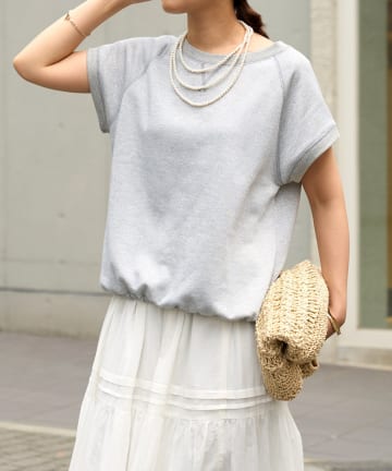 カジュアルなスウェット素材ながら、裾にかけて広がるマーメイドシルエットが、女性らしい上品さを演出します。