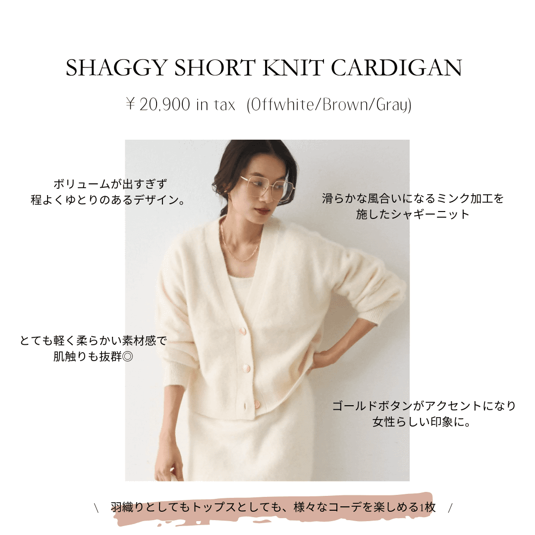肌触りも抜群なシャギーカーディガンなど。