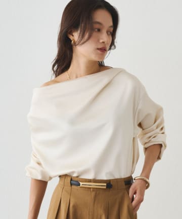 たっぷりとしたチュールのデザインが華やかなニットプルオーバーや
