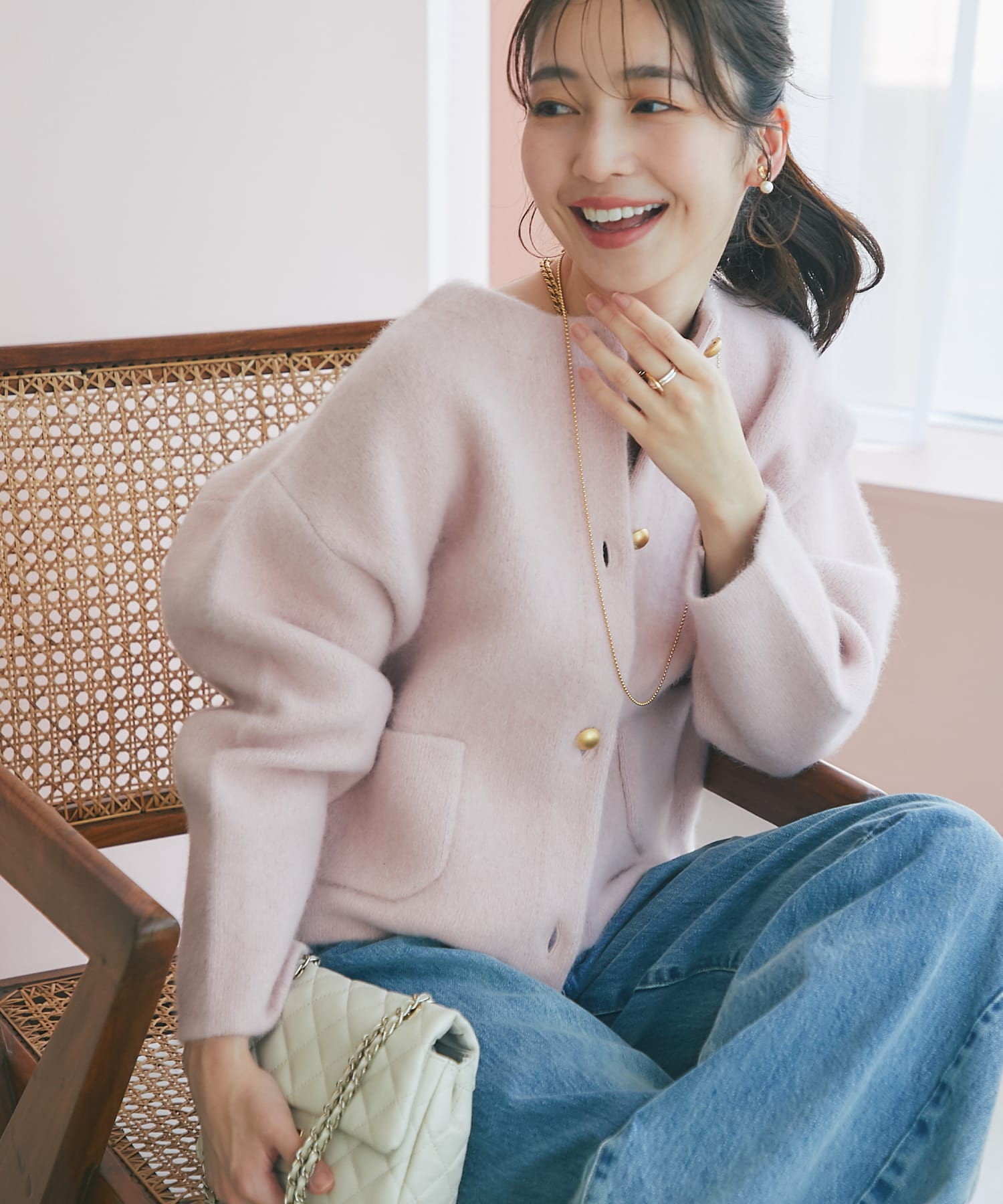 ・ふっくらと暖かく包み込まれるような着心地が魅力のジャケットカーディガン。