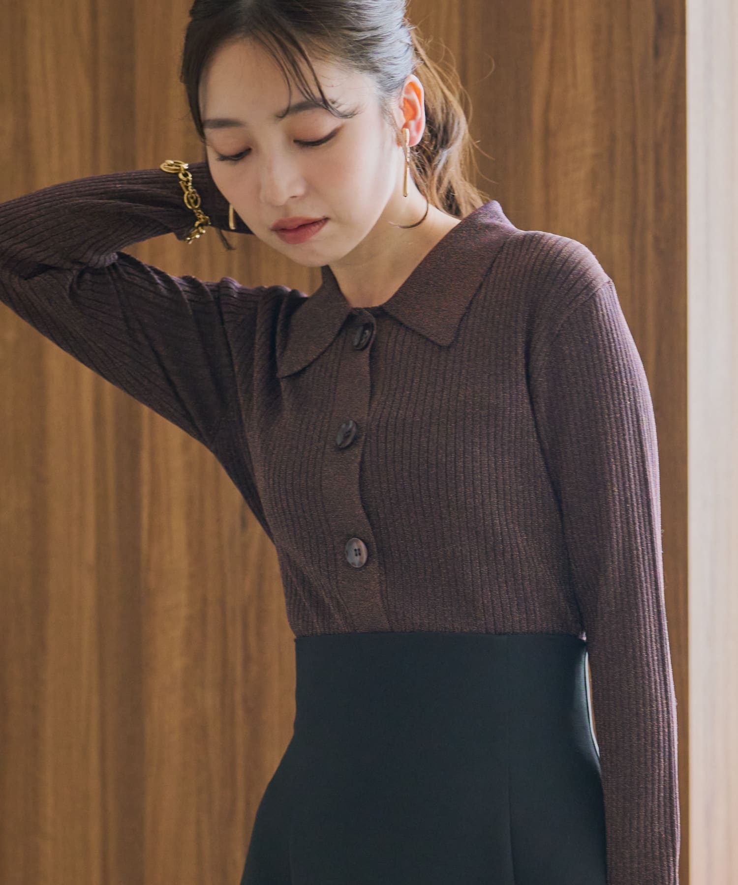 ラメリブポロ衿カーディガン ¥9,900(税込)