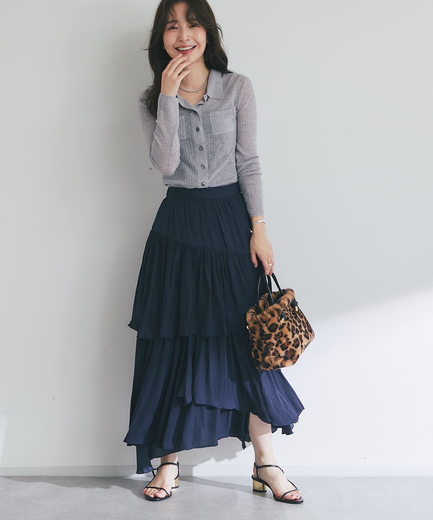 ・上品な光沢感のある生地を使用したティアードスカートです。
