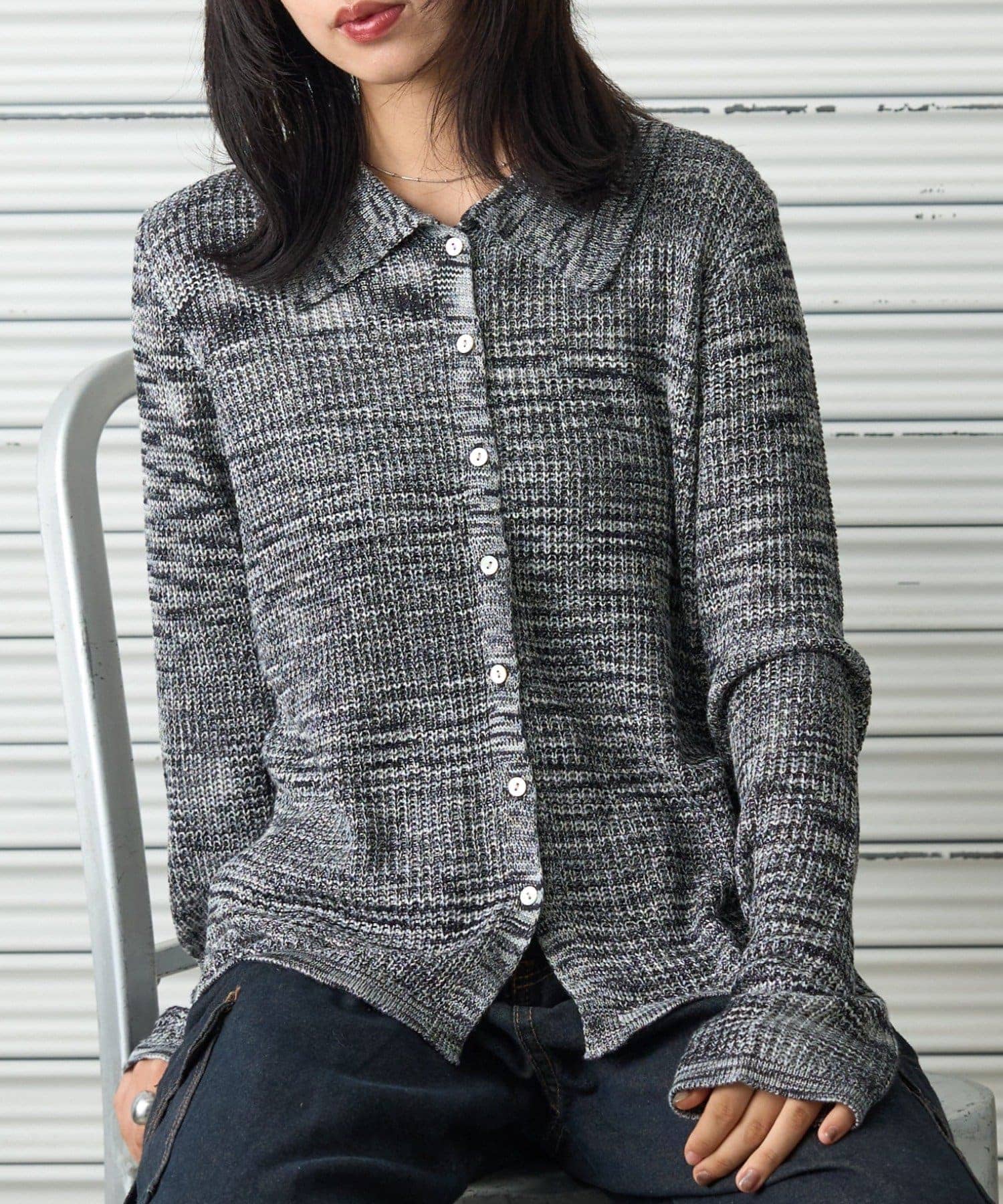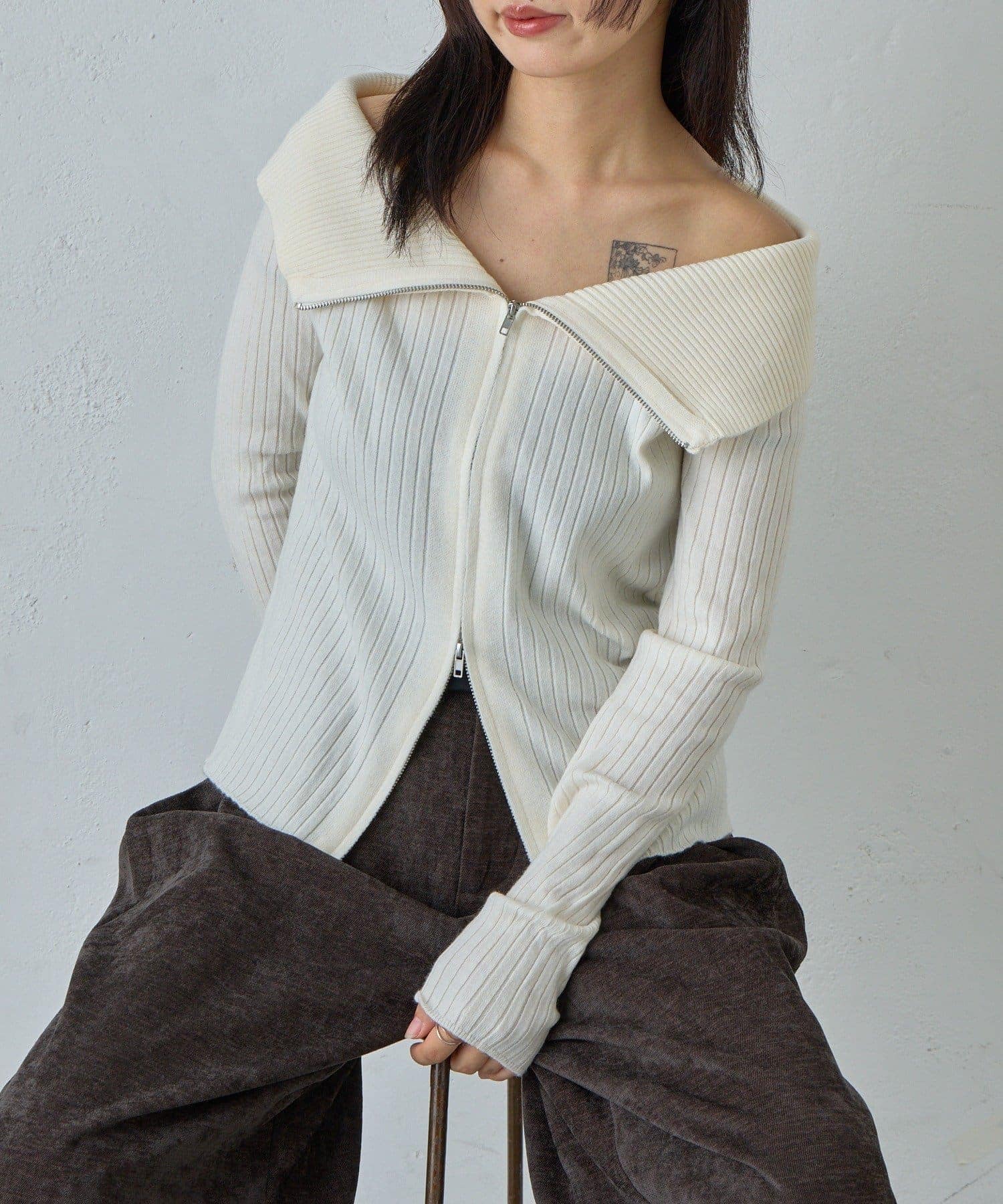 【オフショルリブWジップニット】