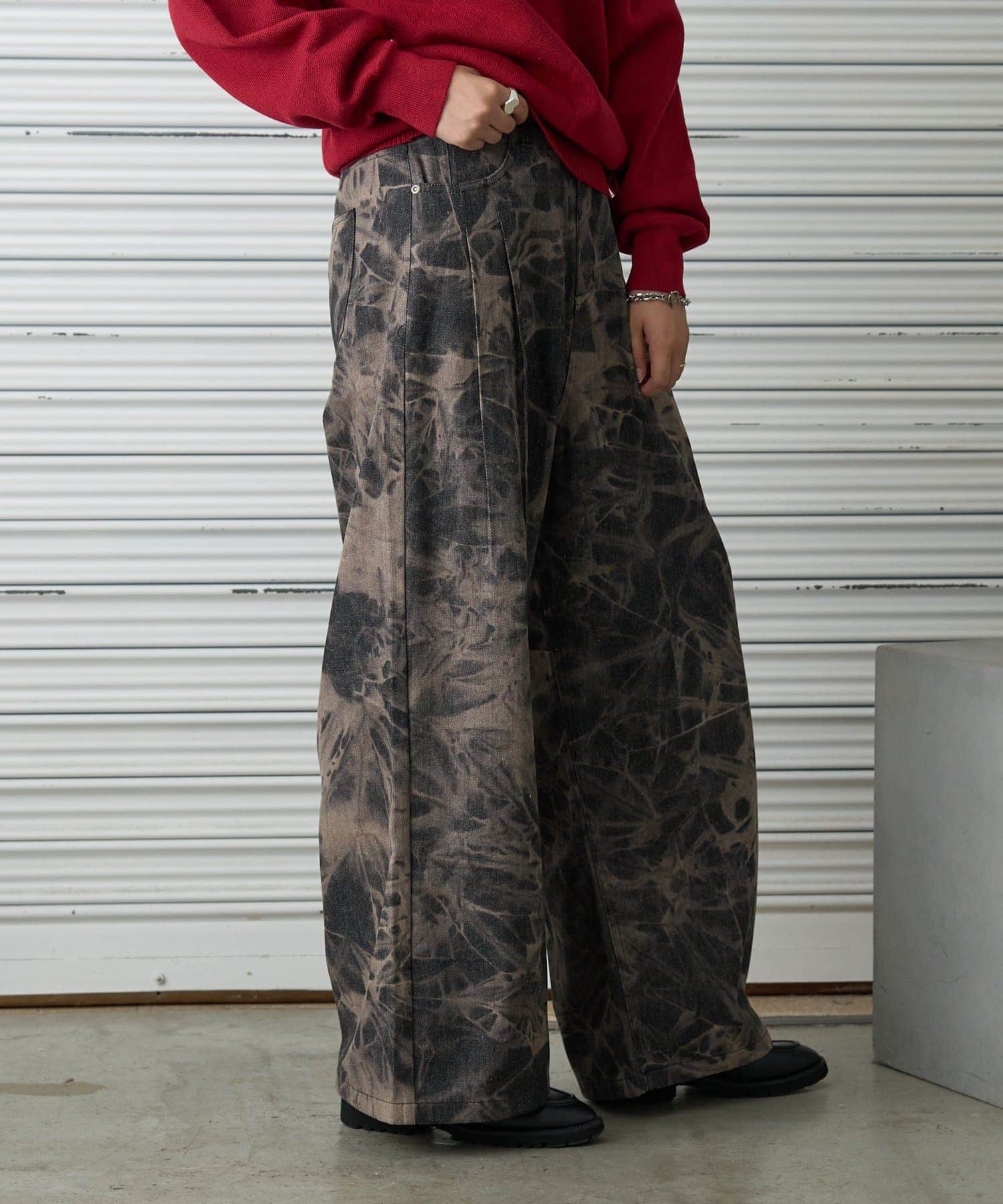 【タイダイ染め風デニムワイドパンツ】