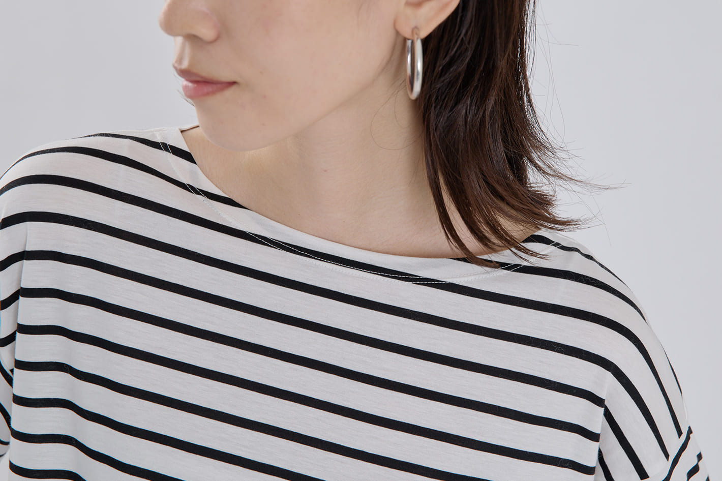どんなスタイルにも調和し、日常にさりげないアクセントを添えるボーダーカットソーは大人のための上品な日常着として活躍してくます。