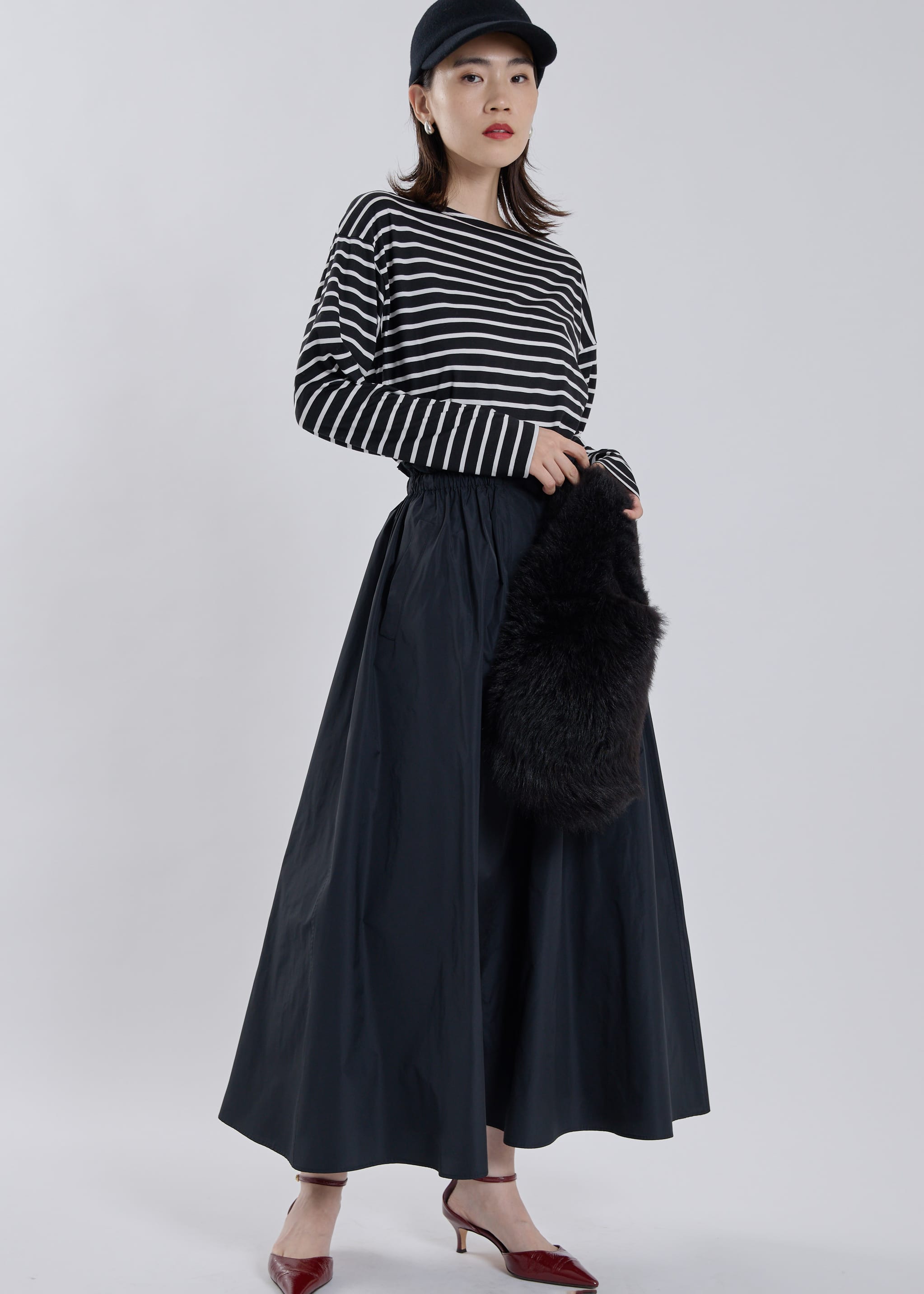 サイドにはスリット入りでタックインなどのアレンジがしやすいのもポイント。