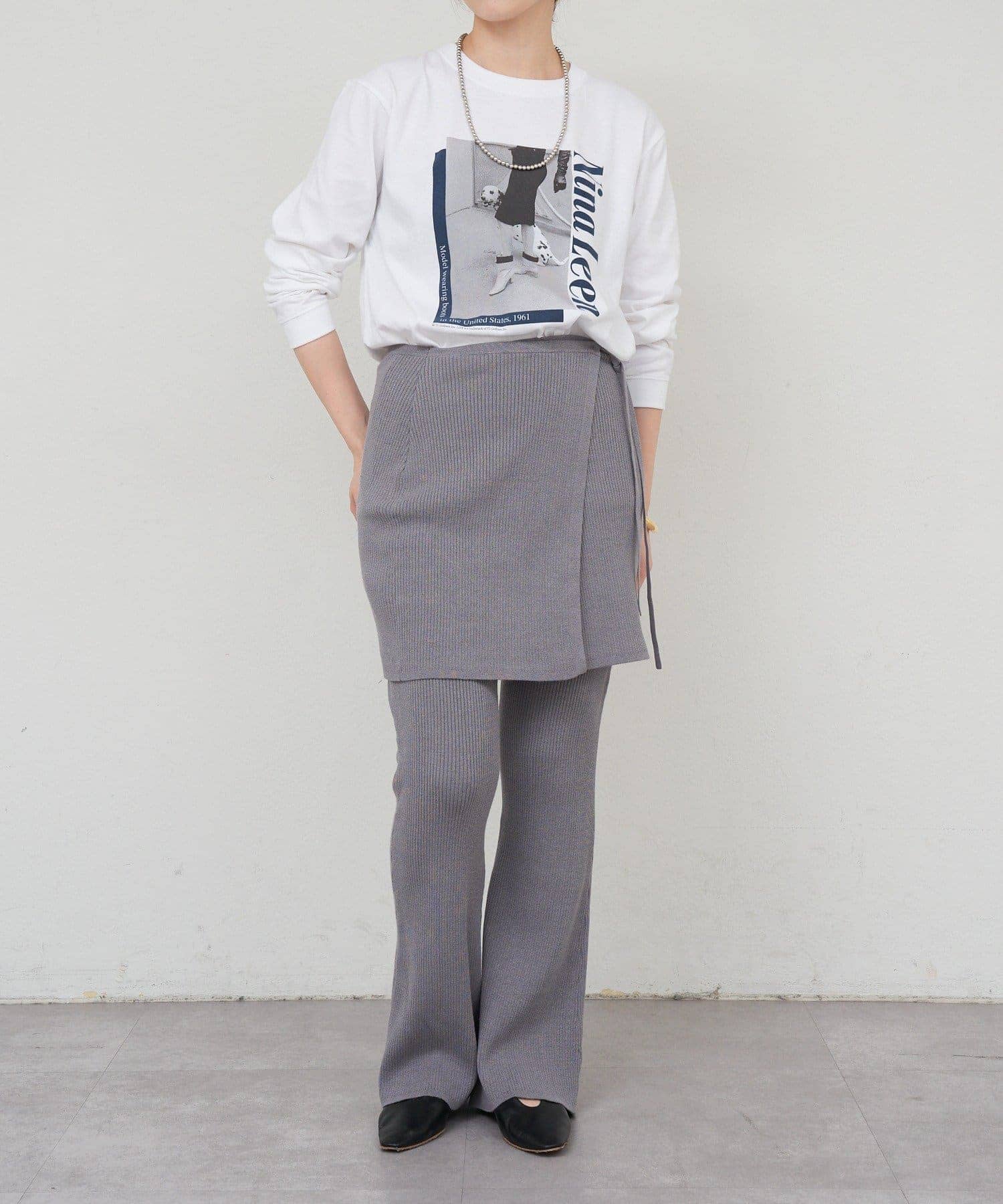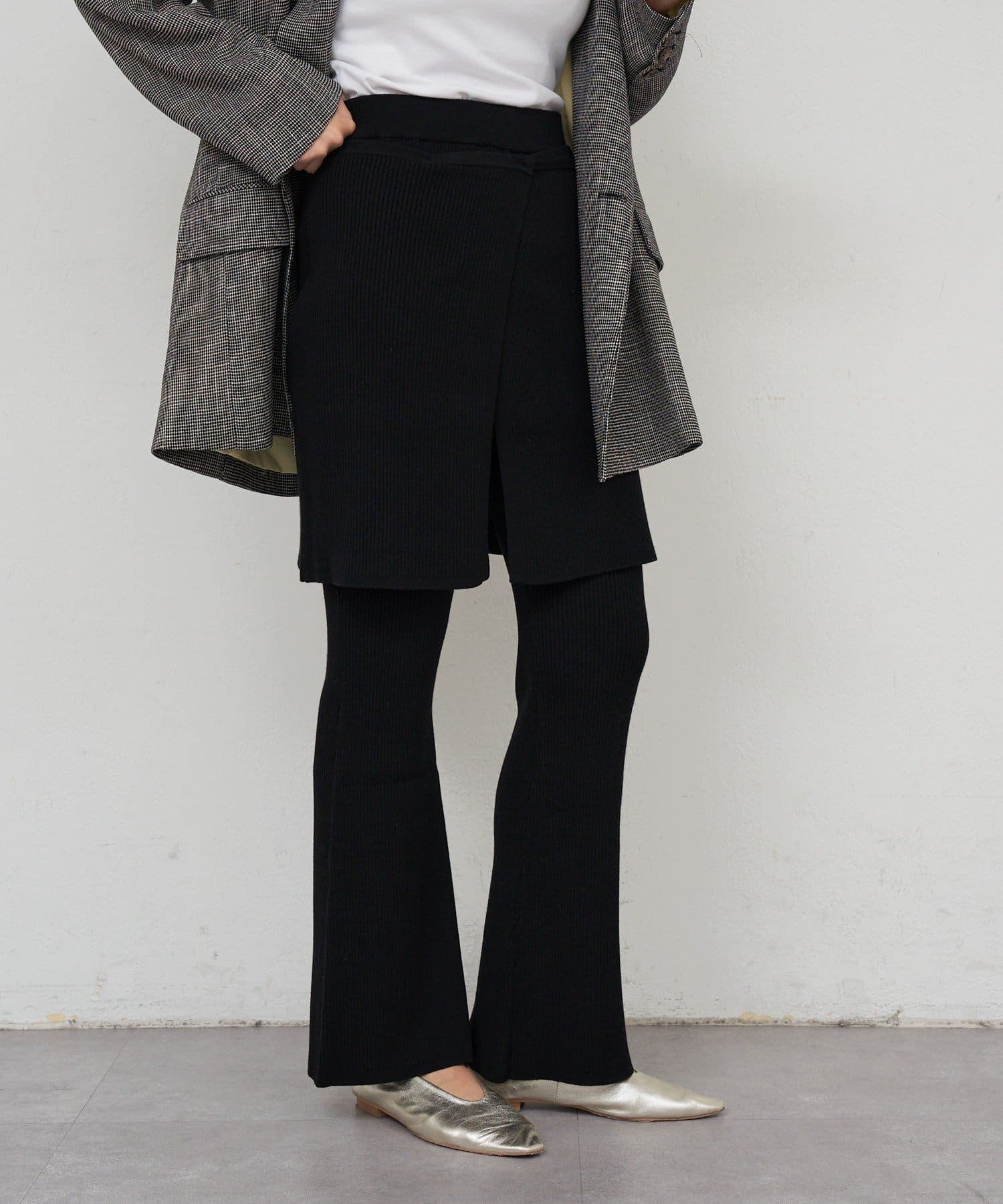スカートレイヤードのデザインで、旬な表情に仕上げたニットパンツ。