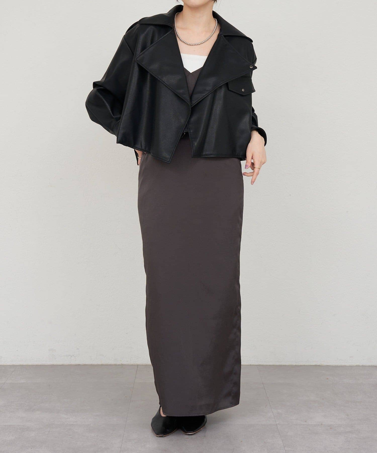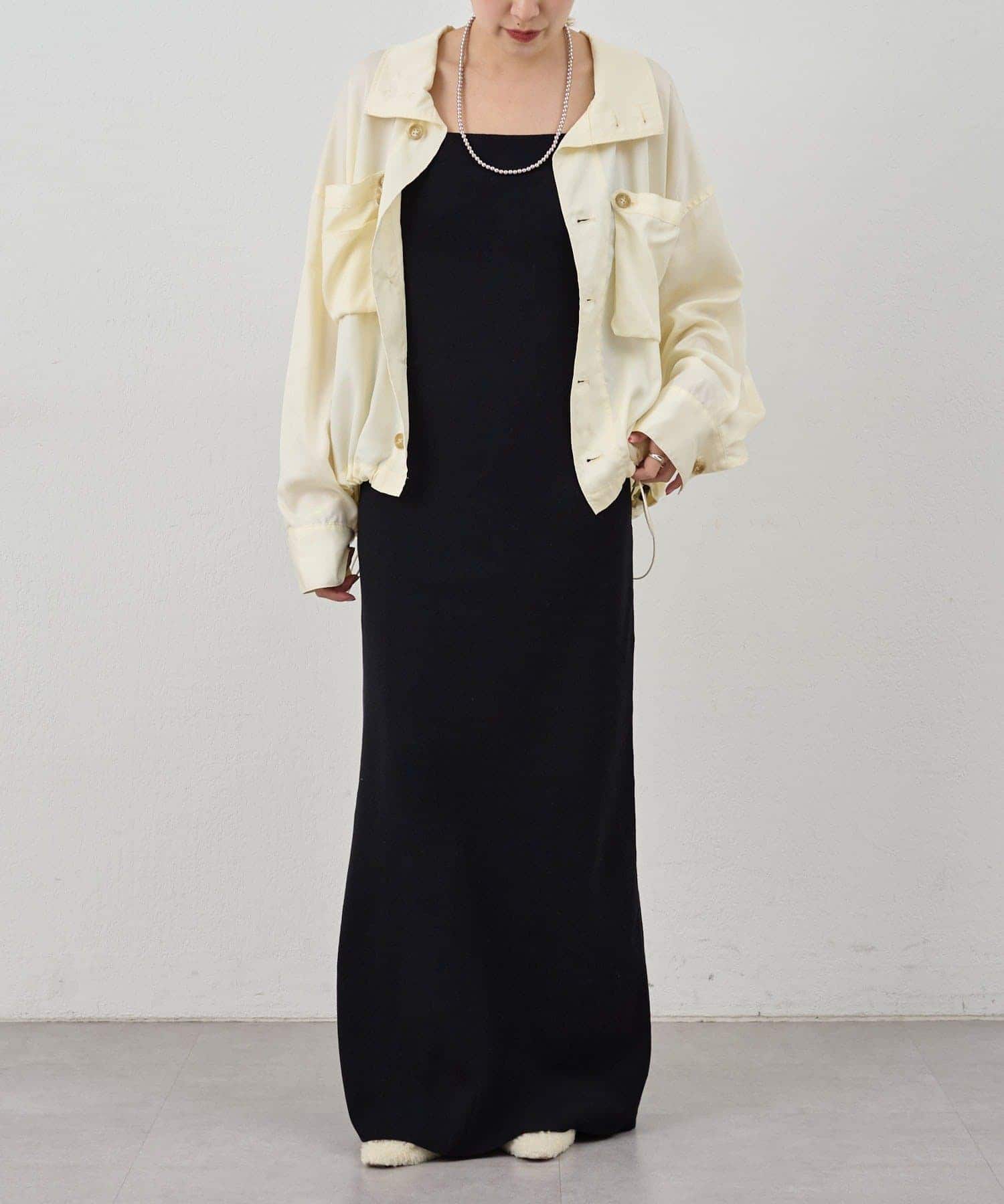 上品な光沢感と、ストンと落ちる美シルエットが魅力の一着。